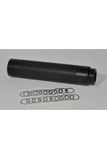 CNC machining .30 dummy silencer. 6061 aluminium construction, with hard black anodize finish. Unique serial number, with deep engraving realistic markings. This dummy silencer is foam filled with a baffle design (for countries allowing foam filling). This dummy silencer is attaches to the .30 Desert Tech muzzle brake (reference: SBA-FHD-01) not included in this package. A set of fine tuning shims is included (reference: SBA-SIL-06). Diameter: 41.3 mm, length: 200 mm, weight (silencer only) : 240 grams. Desert Tech licensed product.